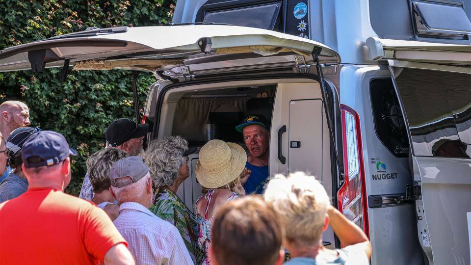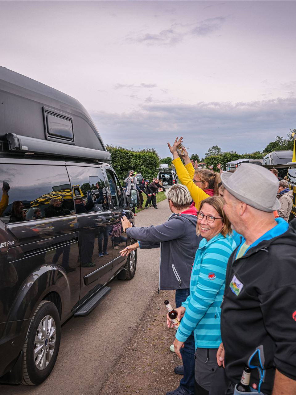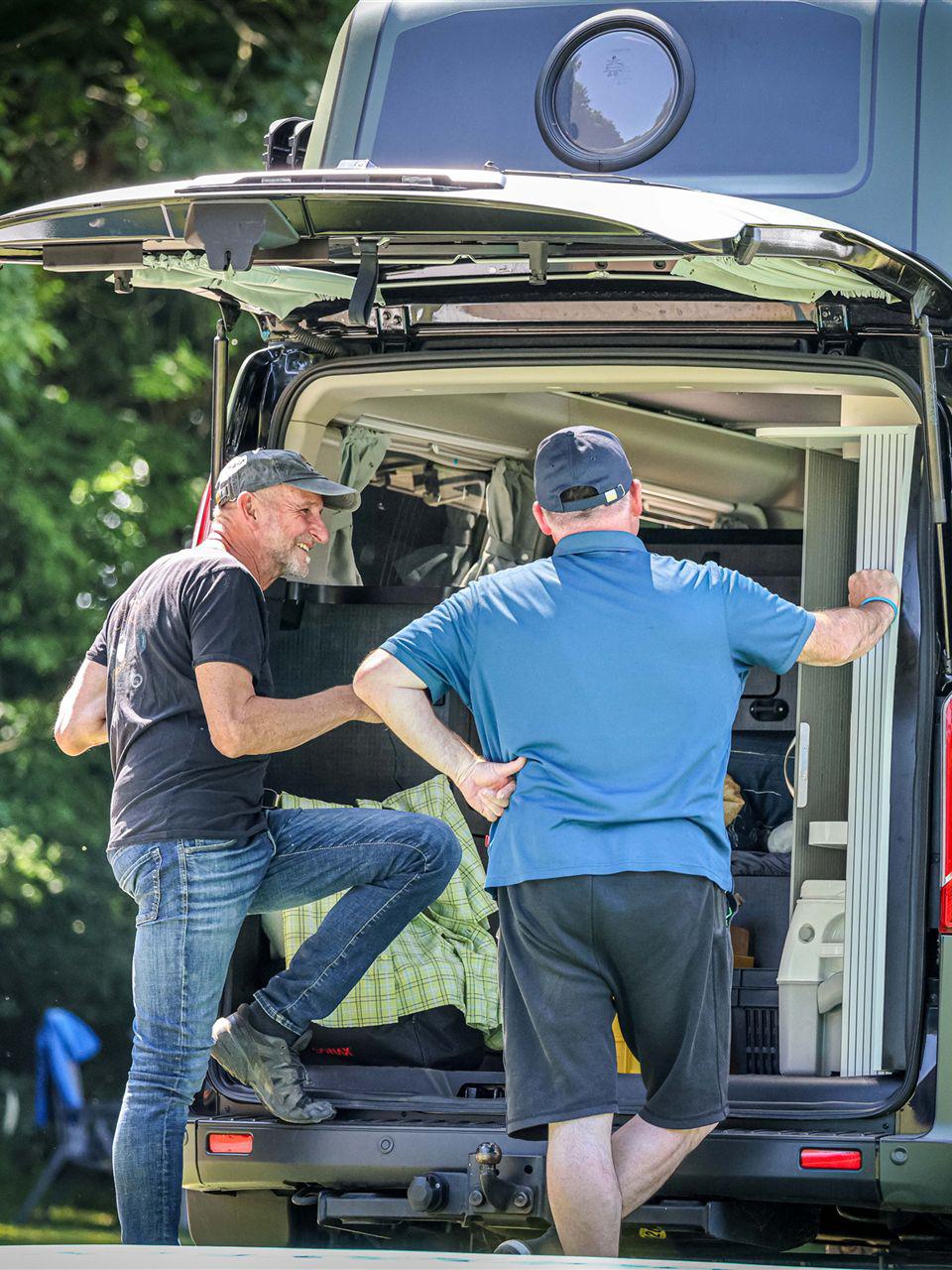 Es dauert nicht lange, bis man bei geöffneter Heckklappe in Gespräche vertieft ist, clevere Schranklösungen feiert, Kontakte knüpft oder gemeinsam am Feuer sitzt – Stockbrot in der einen, ein Kaltgetränk in der anderen Hand. Spätestens wenn Kinder barfuß zwischen Campern spielen und von der Seebühne leise Musik herüberklingt, wird klar: Das ist unsere Community.